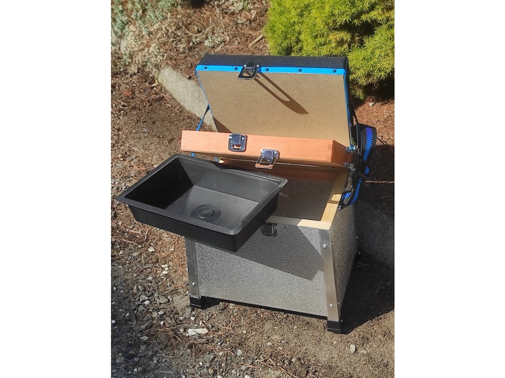Velký úložný prostor uvnitř sedačky + vložená plastová miska + dřevěná kazeta zajišťují dostatek místa.